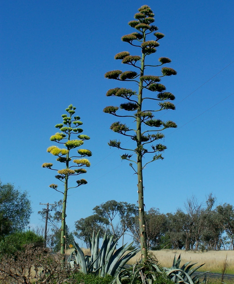 L’agave, qui fleurit qu’une seule fois après 5 à 40 ans de vie selon l’espèce, produit une inflorescence spectaculaire composée de nombreuses fleurs tubulaires avant de mourir – c’est le sacrifice ultime de la plante pour assurer sa progéniture.