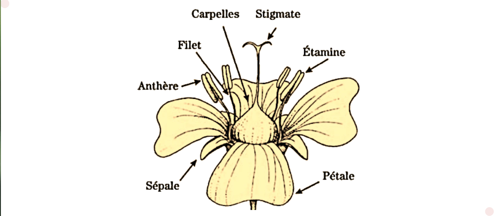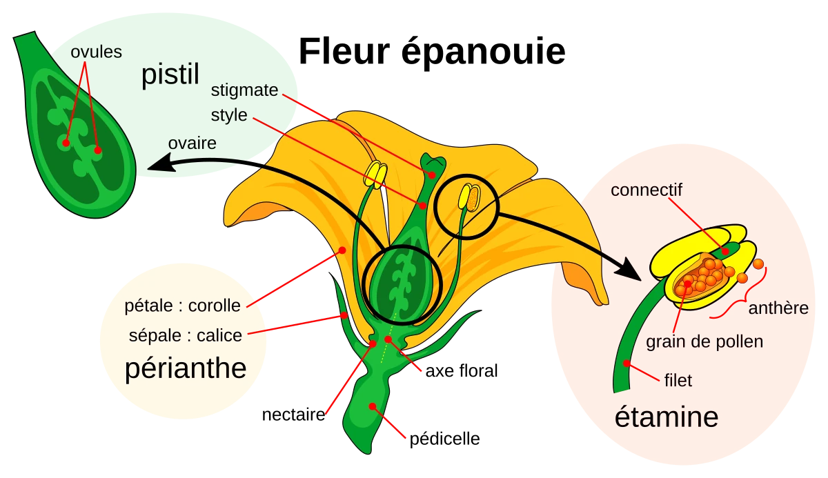 Note : Les termes carpelle? et pistil? sont souvent utilisés de manière interchangeable, bien que techniquement le carpelle? soit l’unité élémentaire et le pistil? soit l’ensemble de tous les carpelles? (libres ou fusionnés).