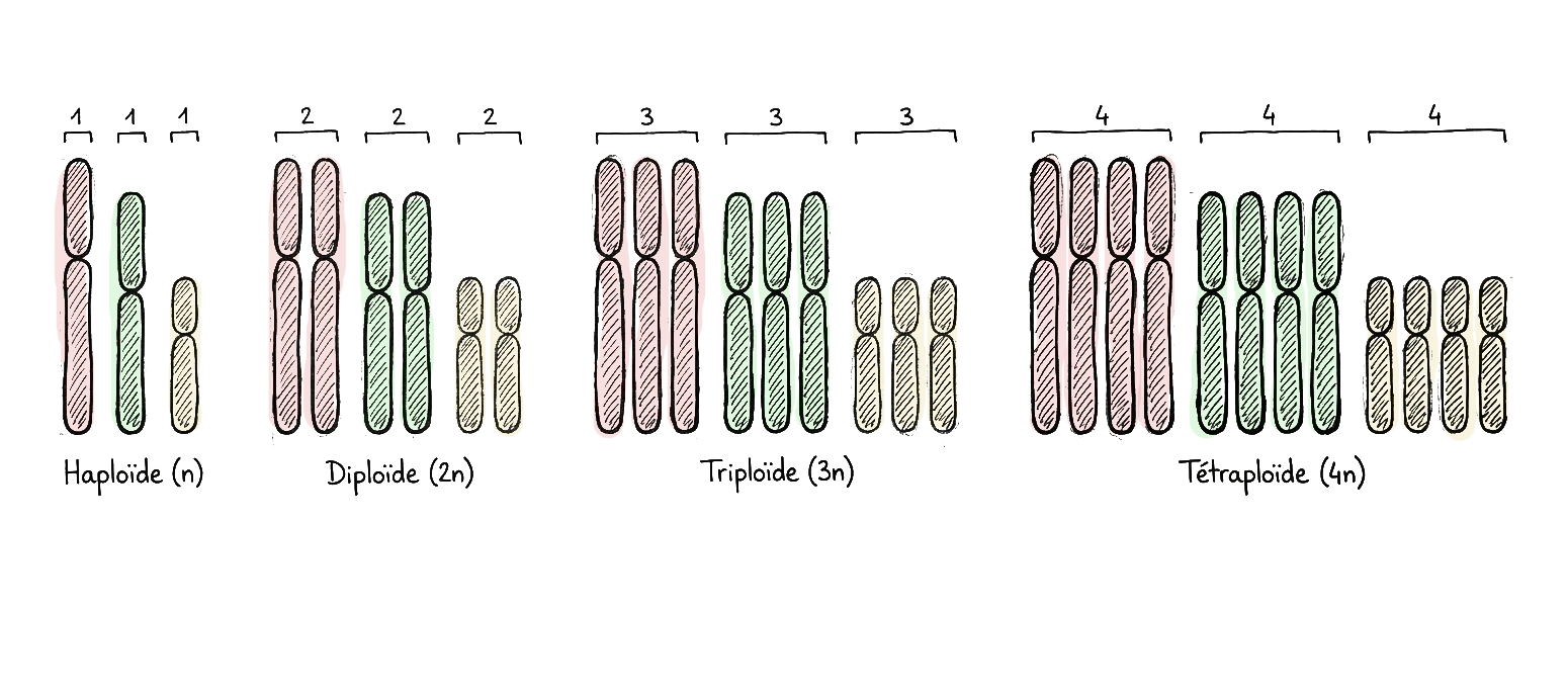 Lorsque vous semez un haricot, l’embryon qui en résulte est issu de la fusion d’un ovule et d’un pollen, formant une graine diploïde? ; toutes les cellules du plant adulte resteront diploïdes? sauf ses gamètes (pollen et ovule) qui seront haploïdes.