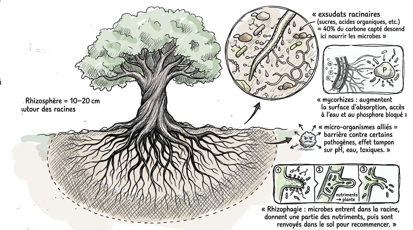 Les mycorhizes? jouent un rôle clé dans la fertilité des sols et la santé des écosystèmes. Nous vous invitons a lire cet article sur la vie des sols, nous y abordons plus en détail les mycorhizes? !