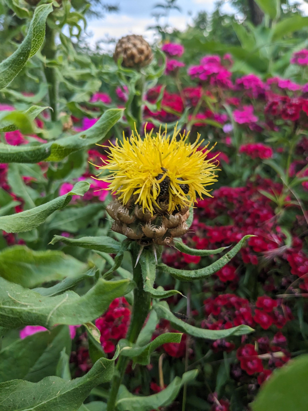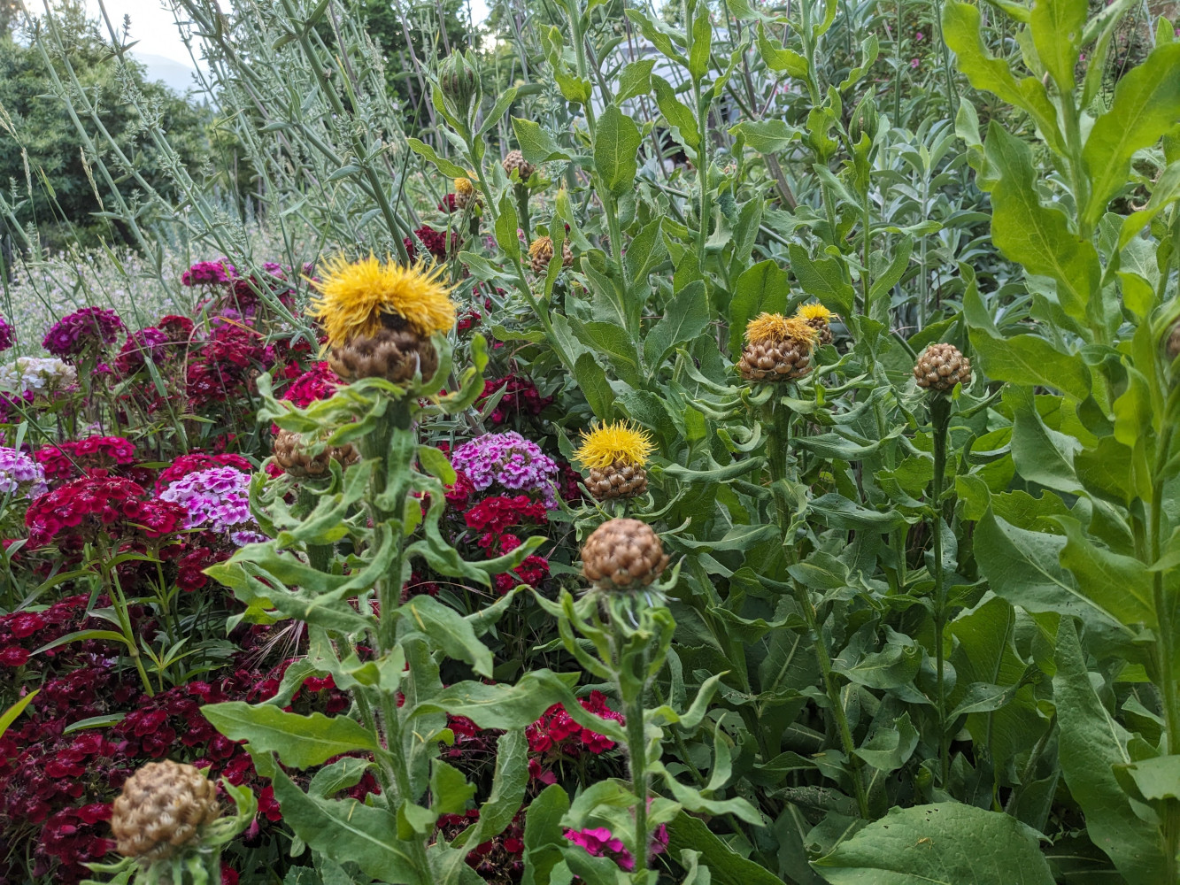 La centaurée du Caucase, appelée souvent centaurée à grosse tête, est une de ces vivaces qui demandent peu et donnent beaucoup : une floraison abondante en été, un port robuste, une bonne résistance à la sécheresse et au froid… Elle est mellifère, on en fait des bouquets frais ou secs et elle est capable de s’accommoder des coins difficiles. On aime !