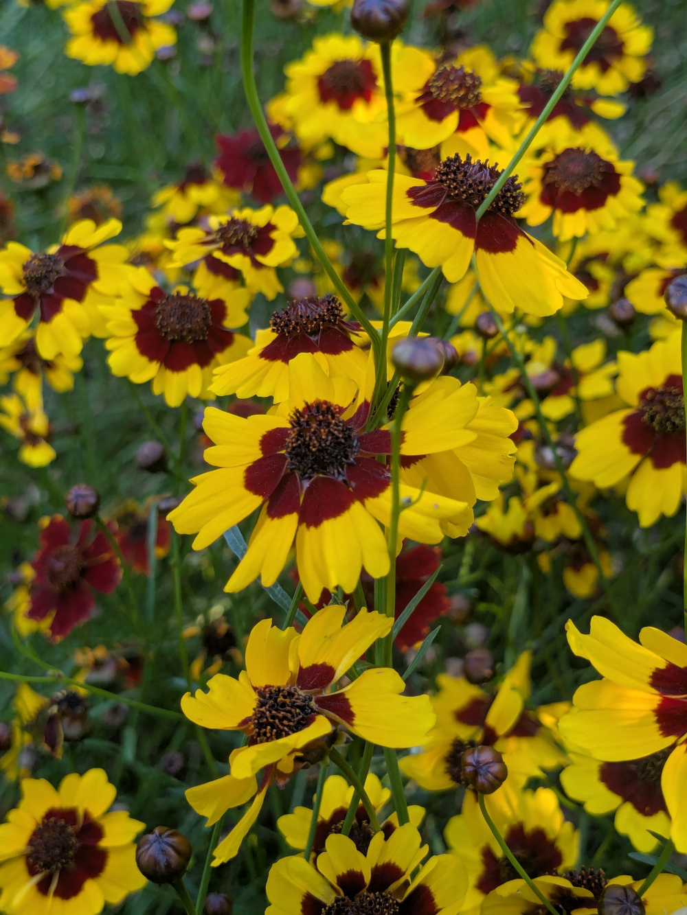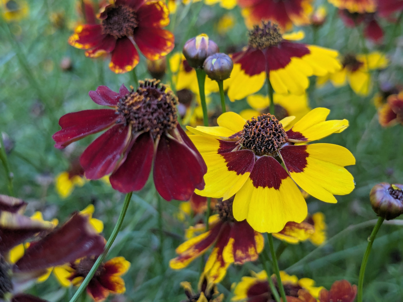 Le Coreopsis tinctoria, également appelé coréopsis des teinturiers, est originaire d’Amérique du Nord. On le trouve couramment dans les prairies, les champs ouverts et les zones perturbées de cette région.
