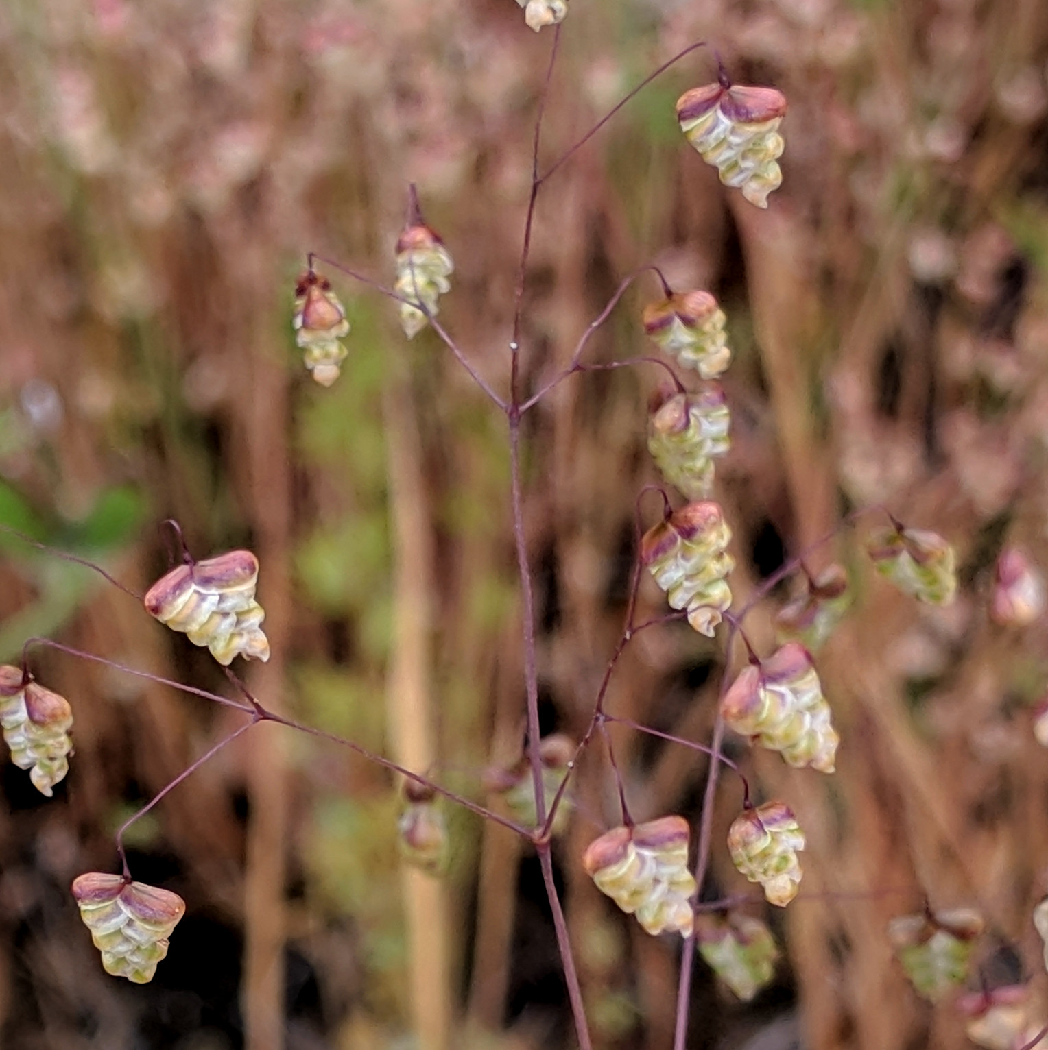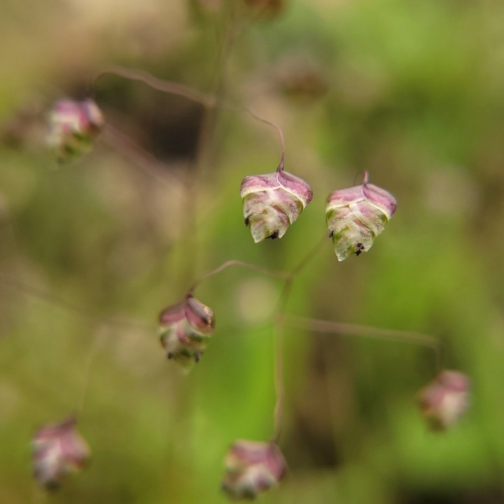 Briza minor, appelée aussi Petite Amourette ou Petite Brize, est une graminée annuelle de la famille des Poacées, originaire du bassin méditerranéen et d’Iran. Elle est indigène d’Europe du Sud, d’Asie occidentale jusqu’à l’Iran, et d’Afrique du Nord, mais s’est aussi naturalisée dans de nombreuses zones tempérées du monde. C’est une plante fine, haute de 15 à 50 cm, glabre, avec des racines fibreuses et des tiges souvent pliées à la base. Ses feuilles sont planes et légèrement rudes, et sa panicule légère porte de petits épillets triangulaires en forme de cœur, verdâtres à légèrement violacés, donnant à la plante son aspect tremblant caractéristique. La floraison s’étend de mai à août, parfois jusqu’à septembre selon le climat. La Petite Amourette pousse dans les champs sableux, les friches légères et les prairies sèches. Elle préfère les sols acides, les expositions ensoleillées et les milieux chauds du sud de l’Europe.