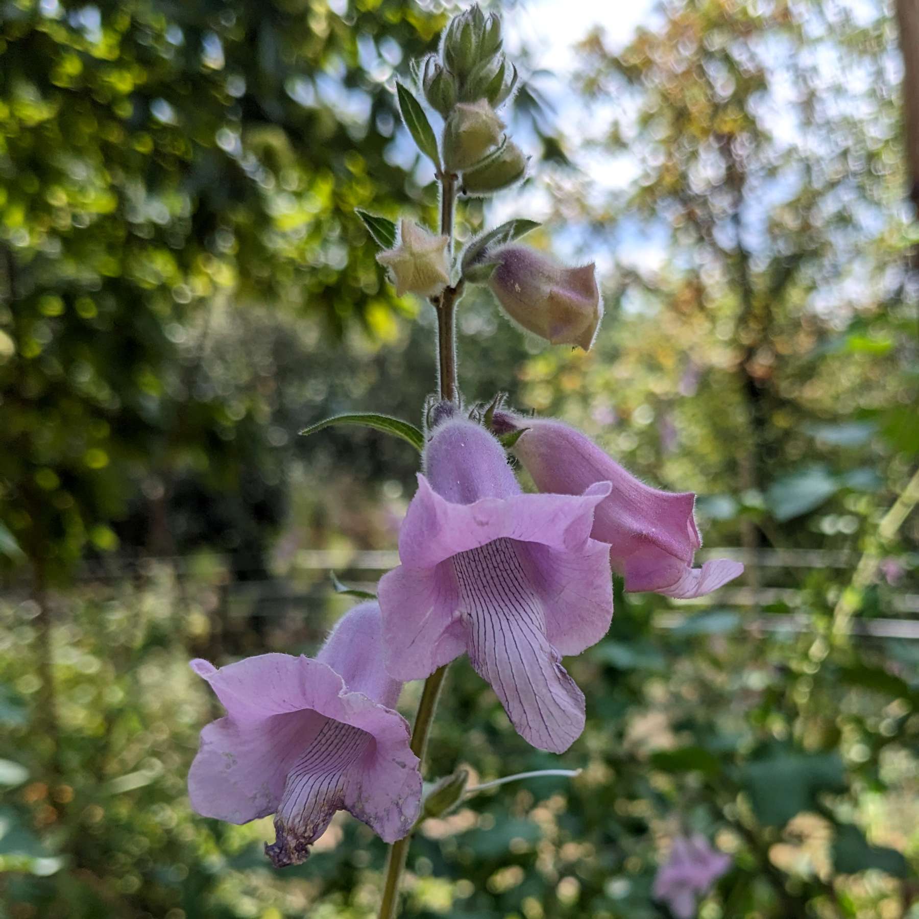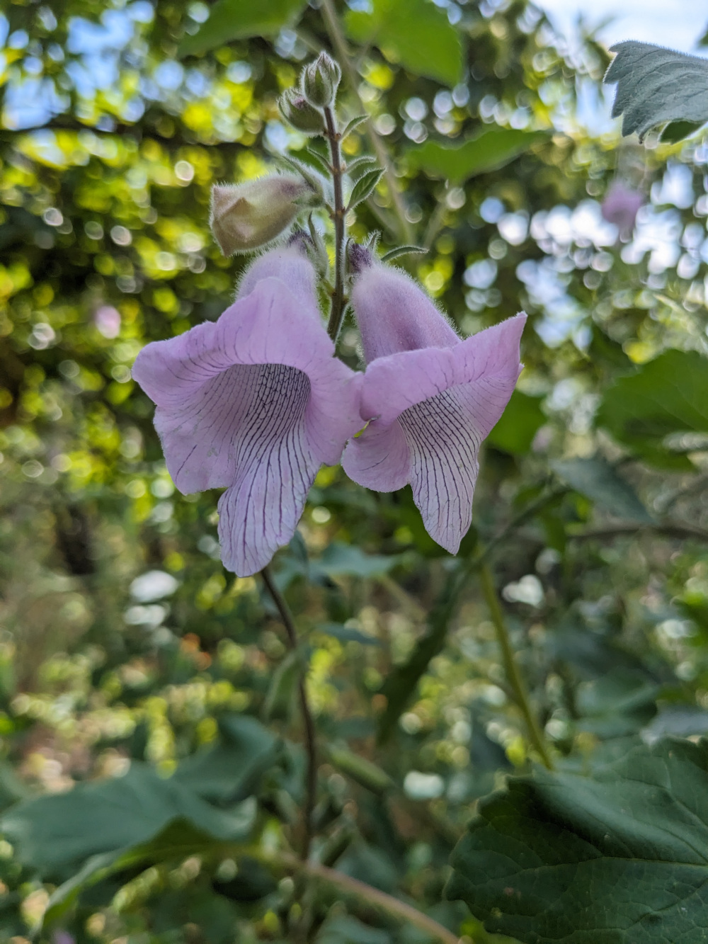 Le sésame du Cap (Ceratotheca triloba) est une plante majestueuse originaire d’Afrique du Sud. Elle déploie de longs épis floraux rappelant ceux des digitales, d’où une certaine confusion à première vue. Ses fleurs en trompette, aux teintes lavande à rosées, s’épanouissent de l’été jusqu’aux premières gelées.