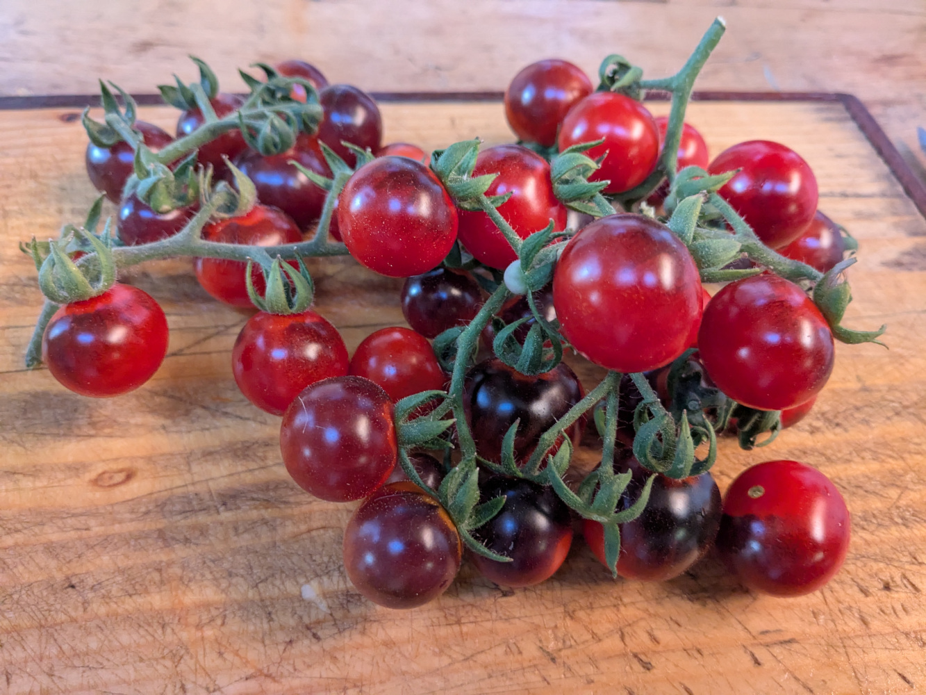 La tomate Blue Berries développe sa couleur indigo grâce aux anthocyanes, un mécanisme similaire à celui que l’on retrouve sur la peau des aubergines ou les feuilles à l’automne. Ce pigment, rare dans les tomates, offre également des bénéfices pour la santé, notamment cardiovasculaires.