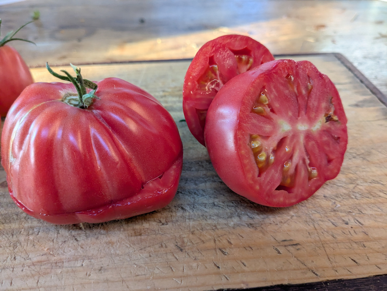 La tomate Sharpei (également appelée Sharpei Pink, Shar Pei ou Шарпей) est une variété ukrainienne magnifique !. Les fruits sont fortement piriformes (en forme de poire) avec un côtelage très prononcé et régulier, rappelant les rides de la race de chien Sharpei, d’où son nom. Les fruits pèsent entre 150 et 170 g. La peau est rose, brillantte et lisse. La chair est dense, juteuse, charnue et très sucrée.