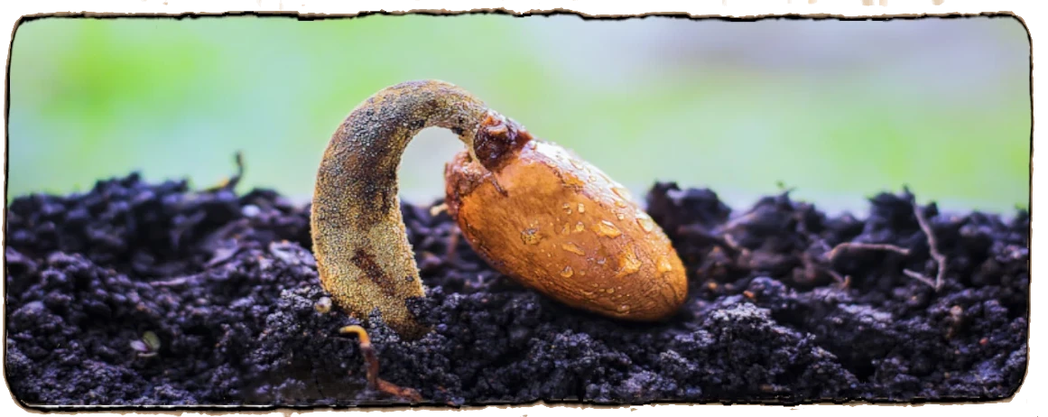 L’enveloppe : La coque de la graine a un rôle malin : elle bloque à la fois l’eau et l’oxygène. Résultat, l’embryon "étouffe" un peu, ce qui le garde endormi. C’est fait exprès pour éviter une germination au mauvais moment. Cette enveloppe est imprégnée de graisses (subérine, cutine) qui la rendent imperméable, comme un ciré. C’est pour ça que certaines graines attendent des années avant de germer. Chez les légumineuses notamment, il existe un petit "clapet" dans l’enveloppe. Tant qu’il reste fermé, rien ne passe. Il faut un choc extérieur (variations de température, chaleur, feu) pour l’ouvrir et laisser rentrer l’eau et l’air.
