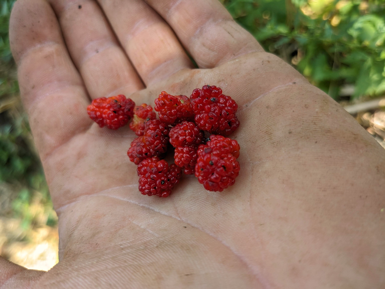 La fructification a lieu de juin à octobre. Les fruits, souvent pris pour des baies, sont en réalité des glomérules rouges et charnus, formés par l’hypertrophie du réceptacle floral. Ils contiennent plusieurs petites graines rondes et noires, qui mûrissent entre juillet et octobre.
